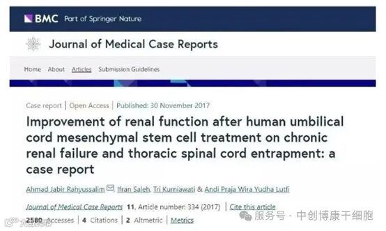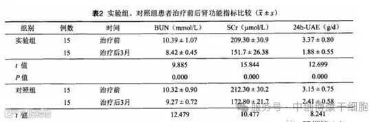 干预后:经过 6周期 脐带MSCs输注,肌酐降至 2 mg/dL,并恢复自主排尿,生活质量显著提升12。