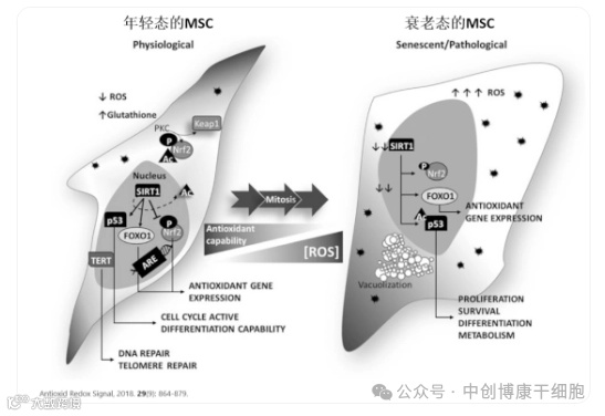 △年轻态的干细胞胞体饱满、呈明显的梭形;衰老的干细胞胞体宽大扁平