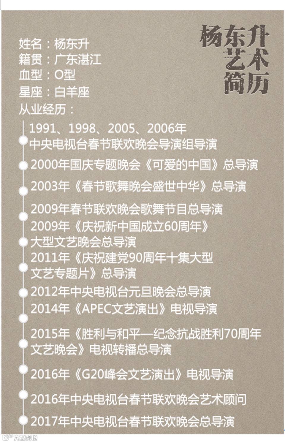 22日,2017鸡年春晚总导演杨东升正式亮相,先带大家了解一下这位“多面”导演: