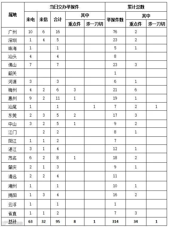 8月31日,中央第四生态环境保护督察组向广东交办第4批涉及环境领域群众举报案件94件(来电62件、来信32件),其中列为重点关注案件8件,分别是梅州3件、东莞2件、惠州1件、中山1件、茂名1件。