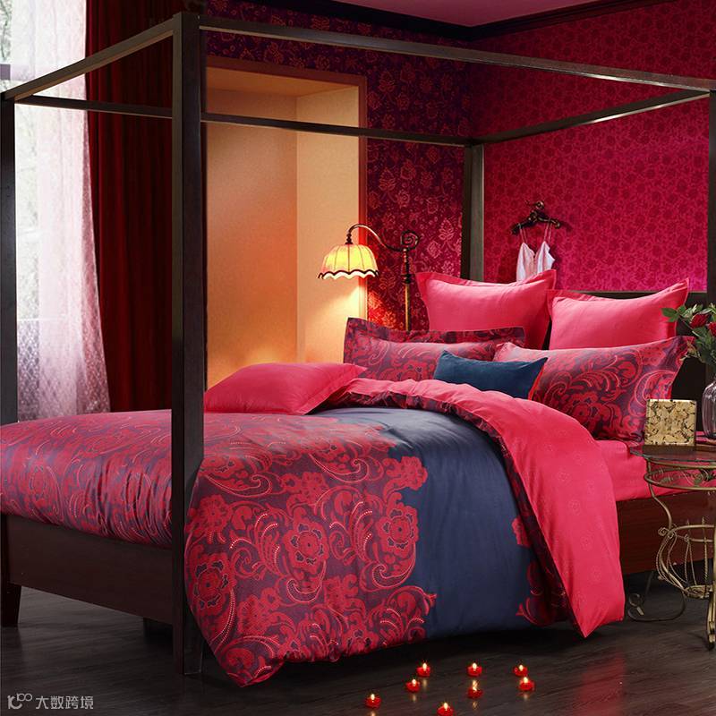 水星家纺全面贡缎四件套,采用高支高密活性印染贡缎面料,色彩艳丽,洗涤不掉色。100%亲肤全棉,安全健康,花型富贵华丽,是居家必备优品。