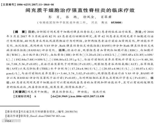 2017年,《河北医学》杂志发布了一项关于运用间充质干细胞(MSCs)干预强直性脊柱炎临床疗效的研究报告。该研究揭示了强直性脊柱炎(AS)与患者自身免疫系统的深刻关联,指出在AS患者的血液中,Th17细胞与调节性T细胞(Treg细胞)的比例失衡是导致其免疫异常的关键因素之一,这种失衡状态进而引发了免疫功能的紊乱,并进一步造成多种组织损伤。