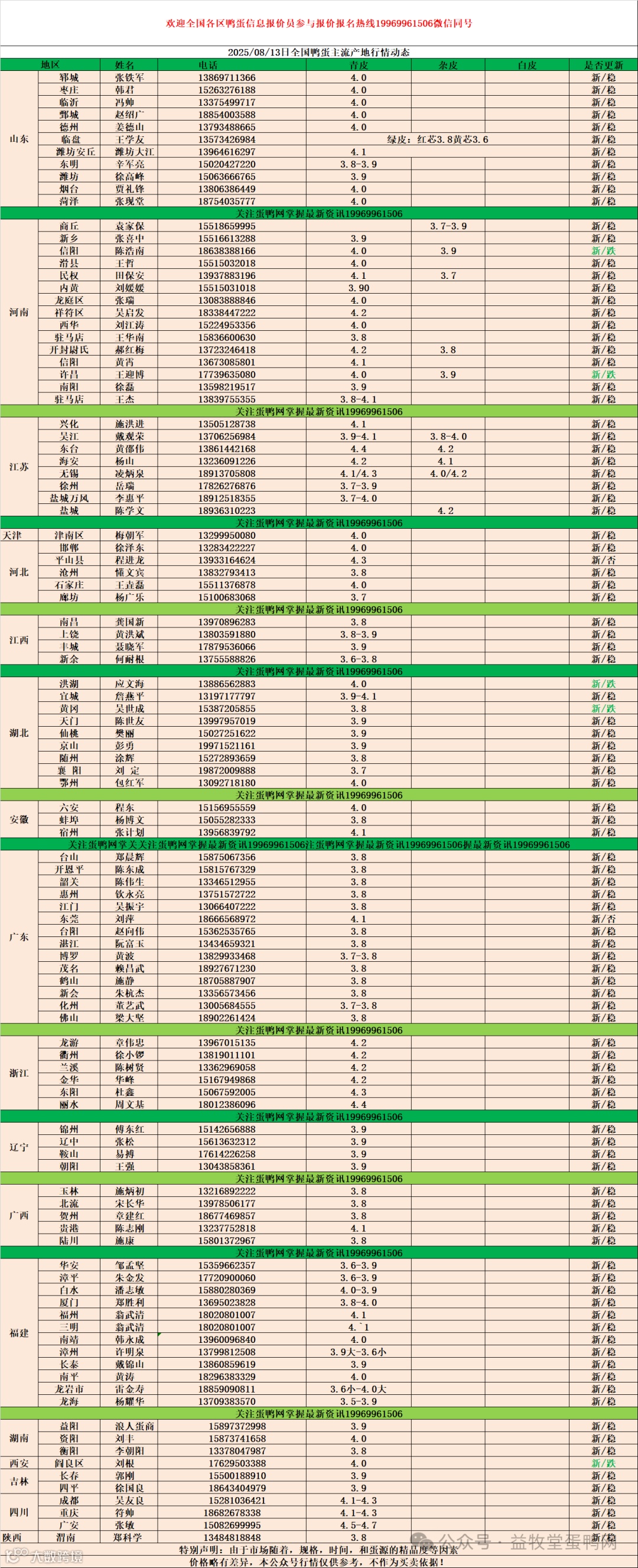 8月13日:初产至10个头2.5元,10个头至8个头3.4元,8个头至7.5个头3.7元,7.5个头至7.14个3.8元。7.14个至大蛋3.9元