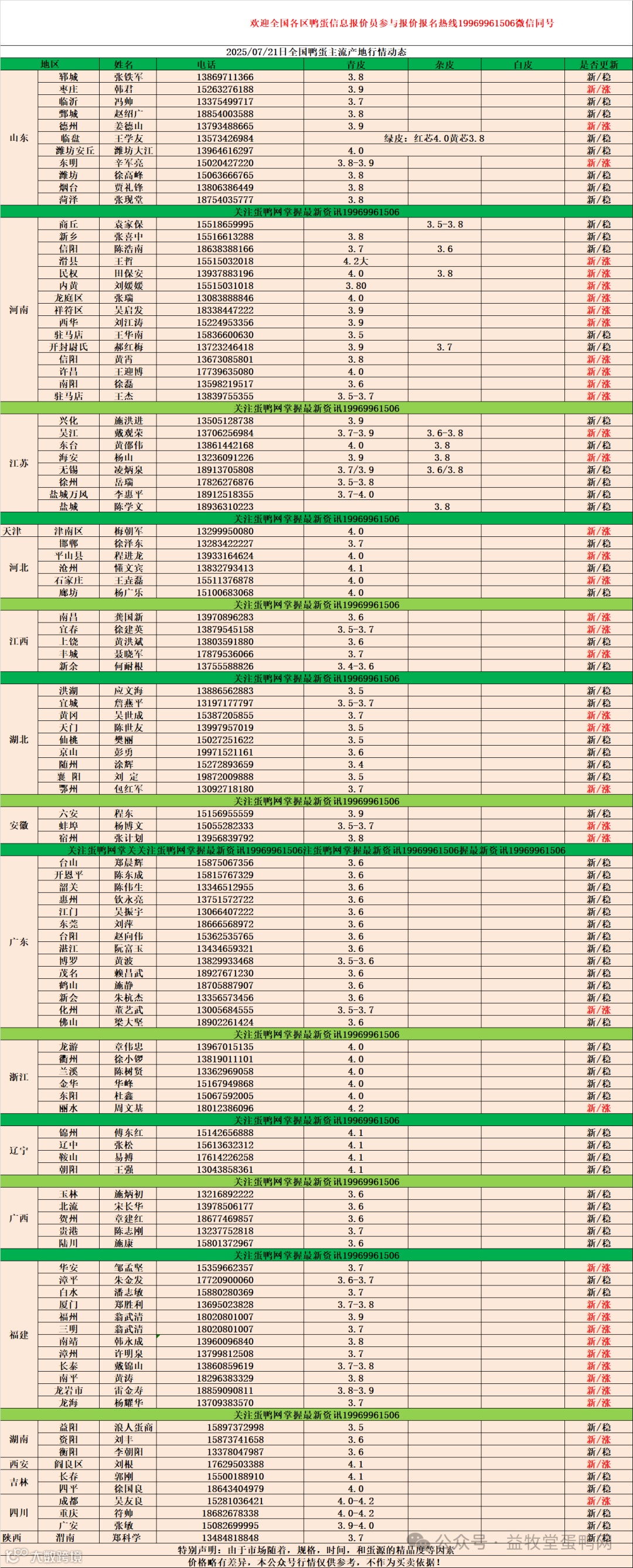 7月21日:初产至10个头2.5元,10个头至8个头3.2元,8个头至7.5个头3.9元,7.5个头至大蛋4.1元