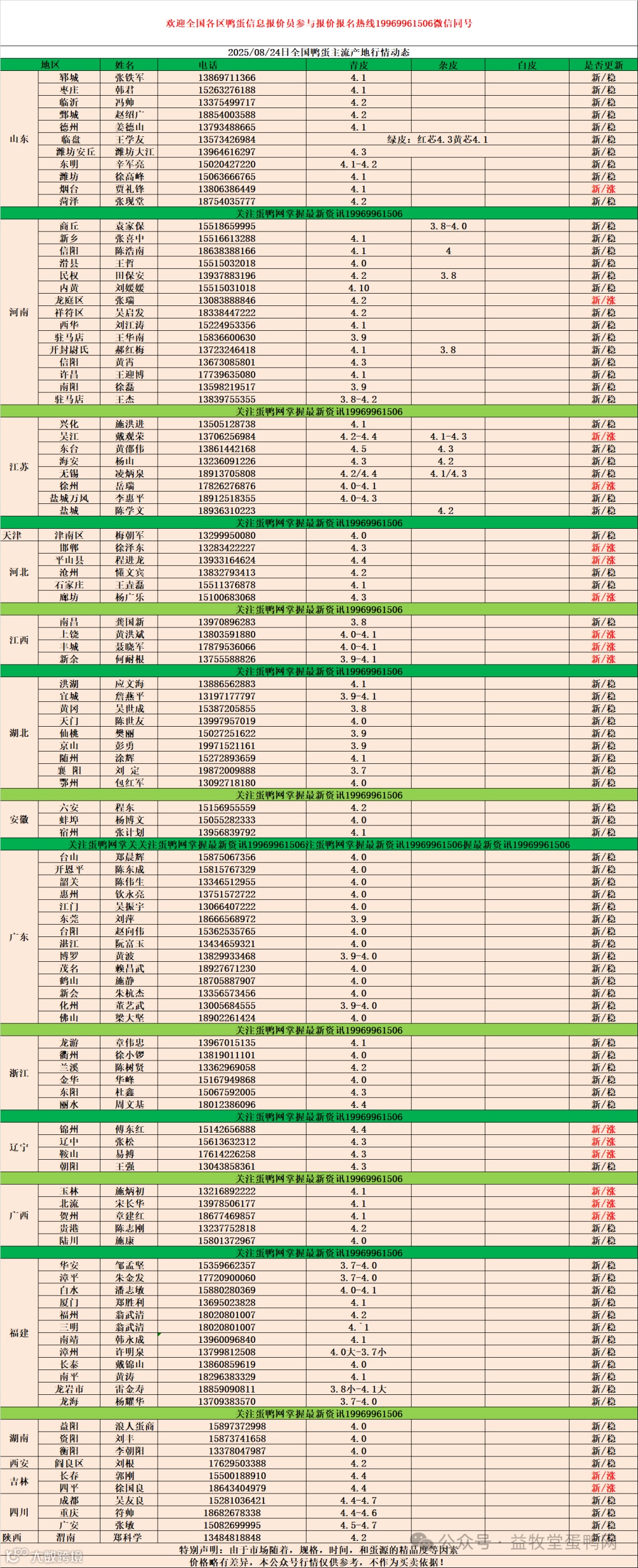 8月24日:初产至10个头2.7元,10个头至8个头3.5元,8个头至7.5个头3.9元,7.5个至大蛋4.4元。