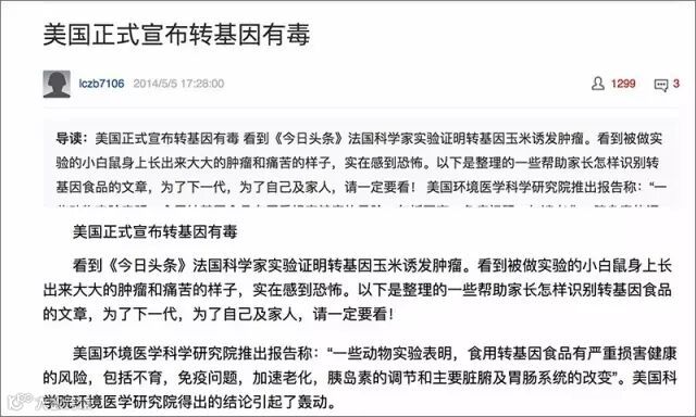 谣言:一篇名为《美国正式宣布转基因有毒》的文章流传开来,美国人民再一次不吃转基因了。