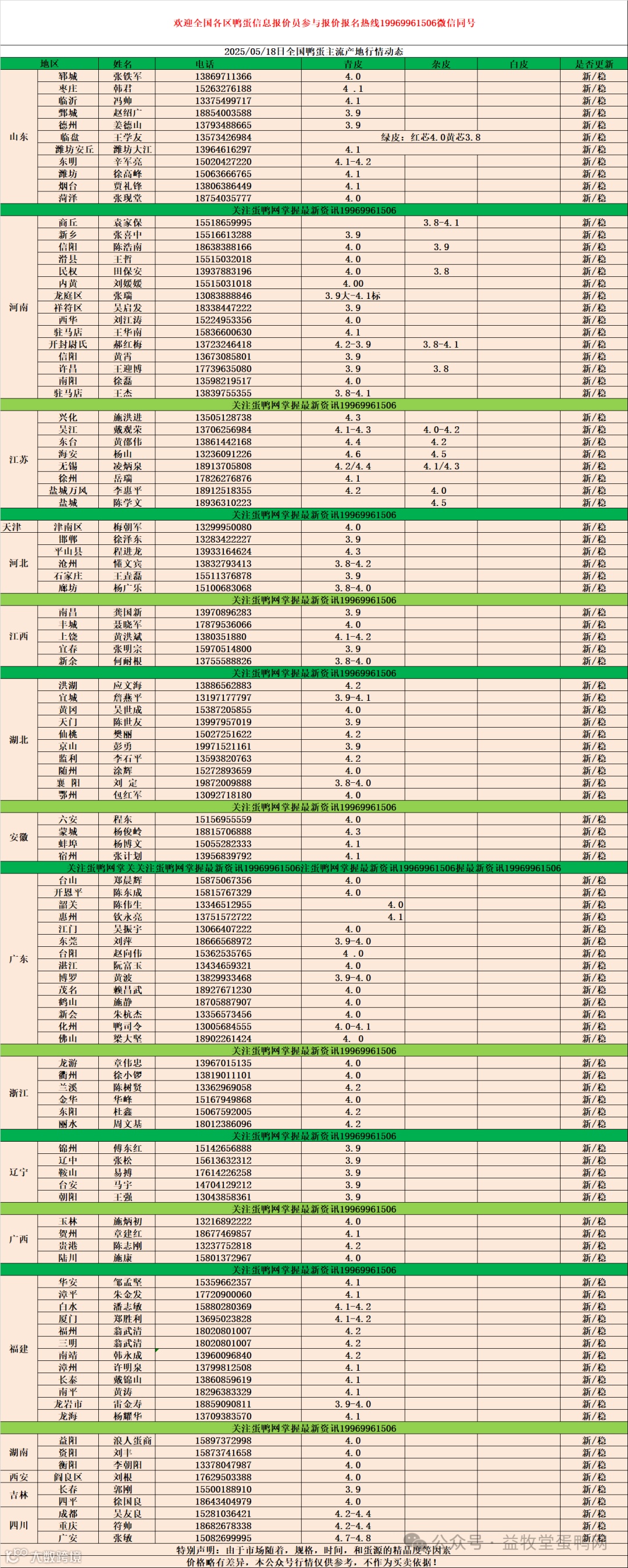2025年5月18日商品鸭蛋报价 益牧堂水禽信息