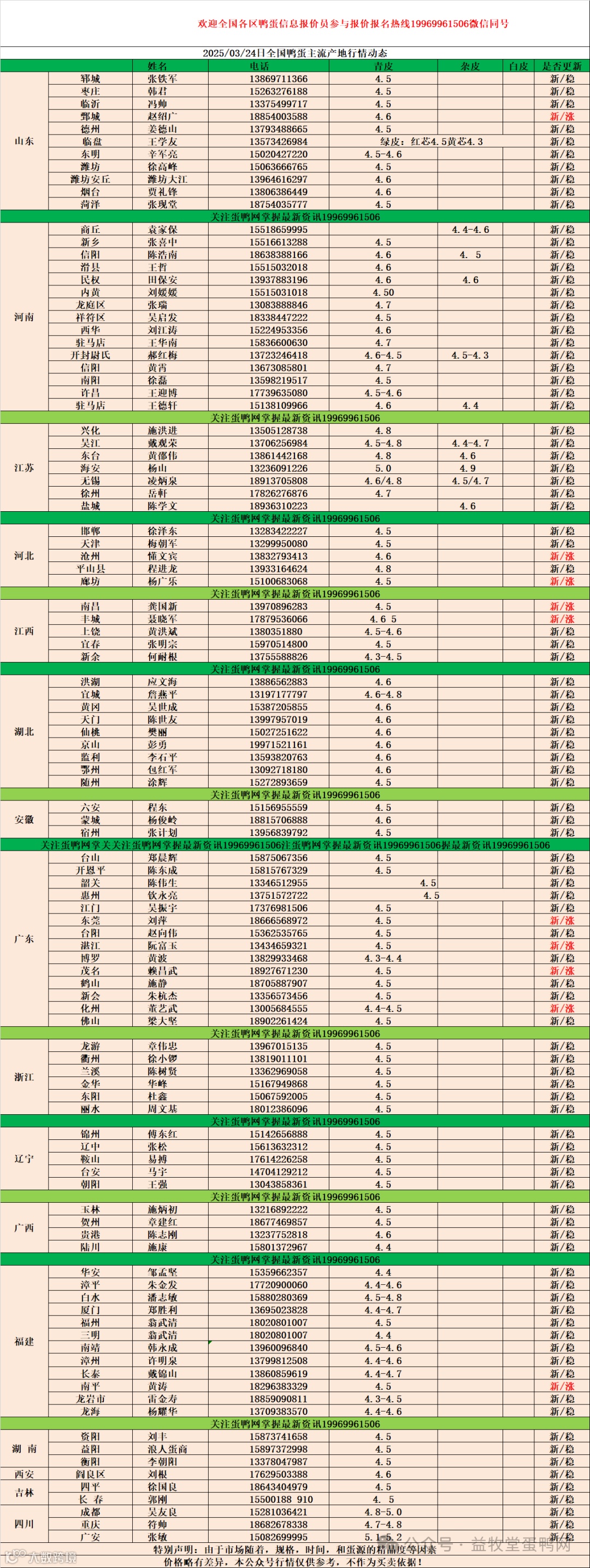 2025年3月25日商品鸭蛋报价 益牧堂水禽信息