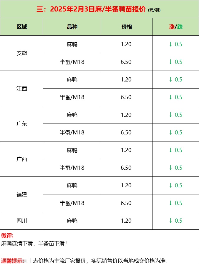 麻鸭半番毛鸭活禽交易节后逐步启动中,规模成交区域差异大。