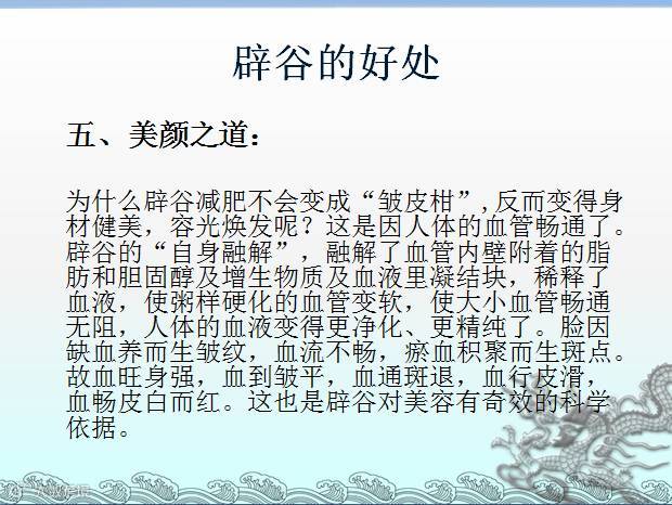 接下来,给大家分享我做的几张图片,大家先简单里了解一下辟谷的好处。