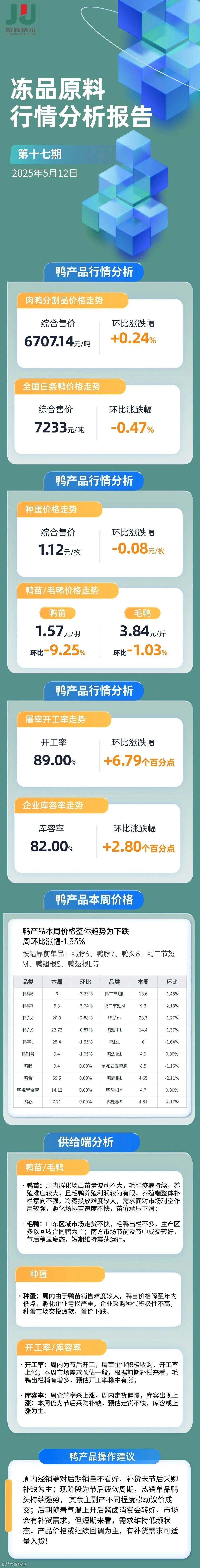 2025第17期冻品原料(鸭鸡猪牛)行情走势分析报告