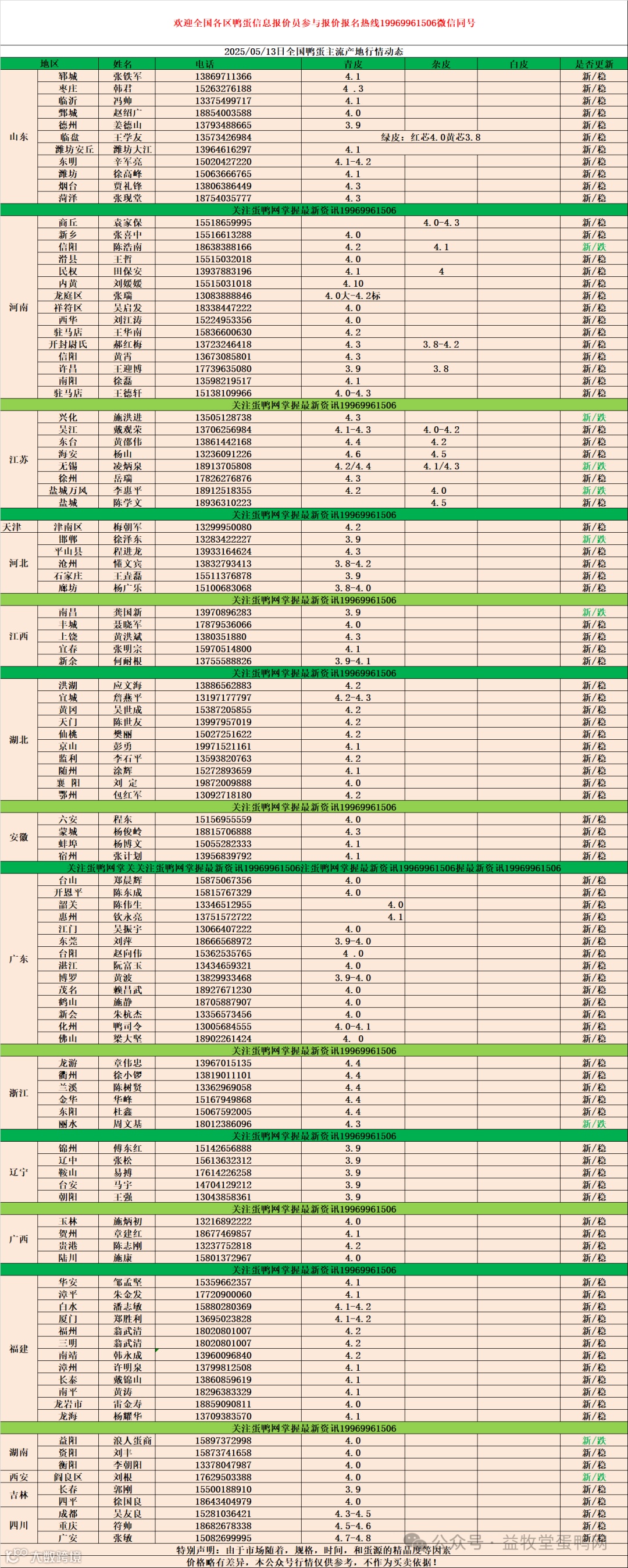 2025年5月13日商品鸭蛋报价 益牧堂水禽信息