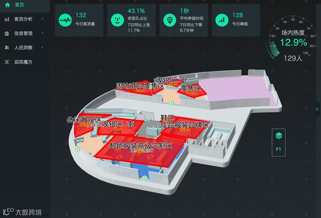 通过AI人脸识别系统,统计顾客在门店停留的区域、时间、次数,从而更加合理的布局商品陈列和规划店内区域,还能够对全年峰值进行分析,解析门店位置。
