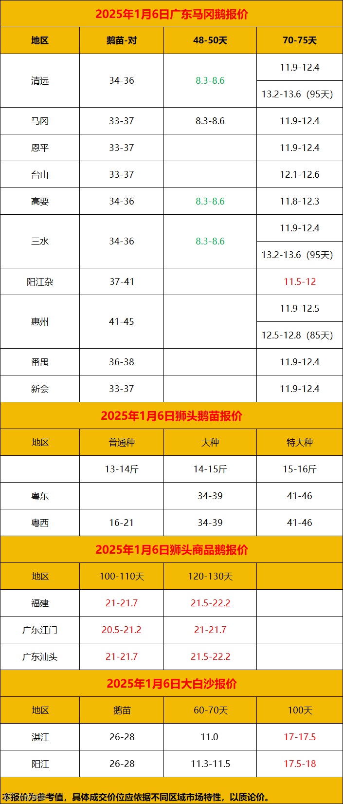 2025年1月7日鹅价快报