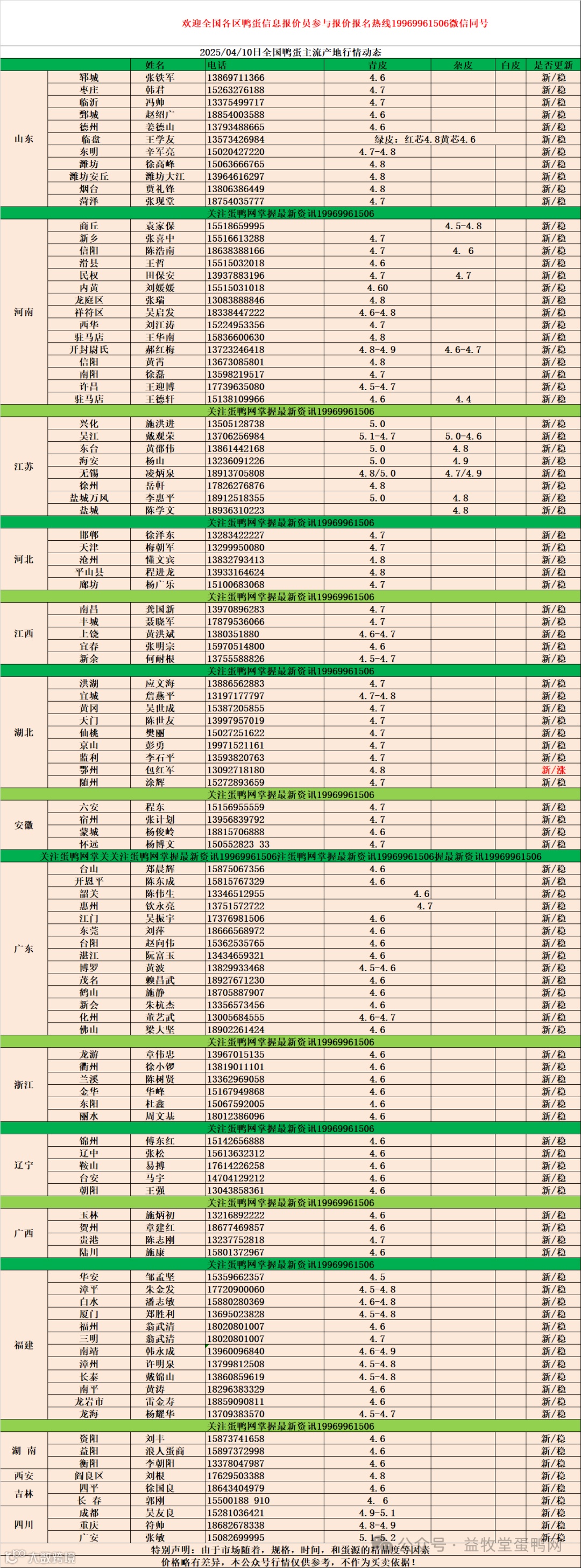 2025年4月10日商品鸭蛋报价 益牧堂水禽信息
