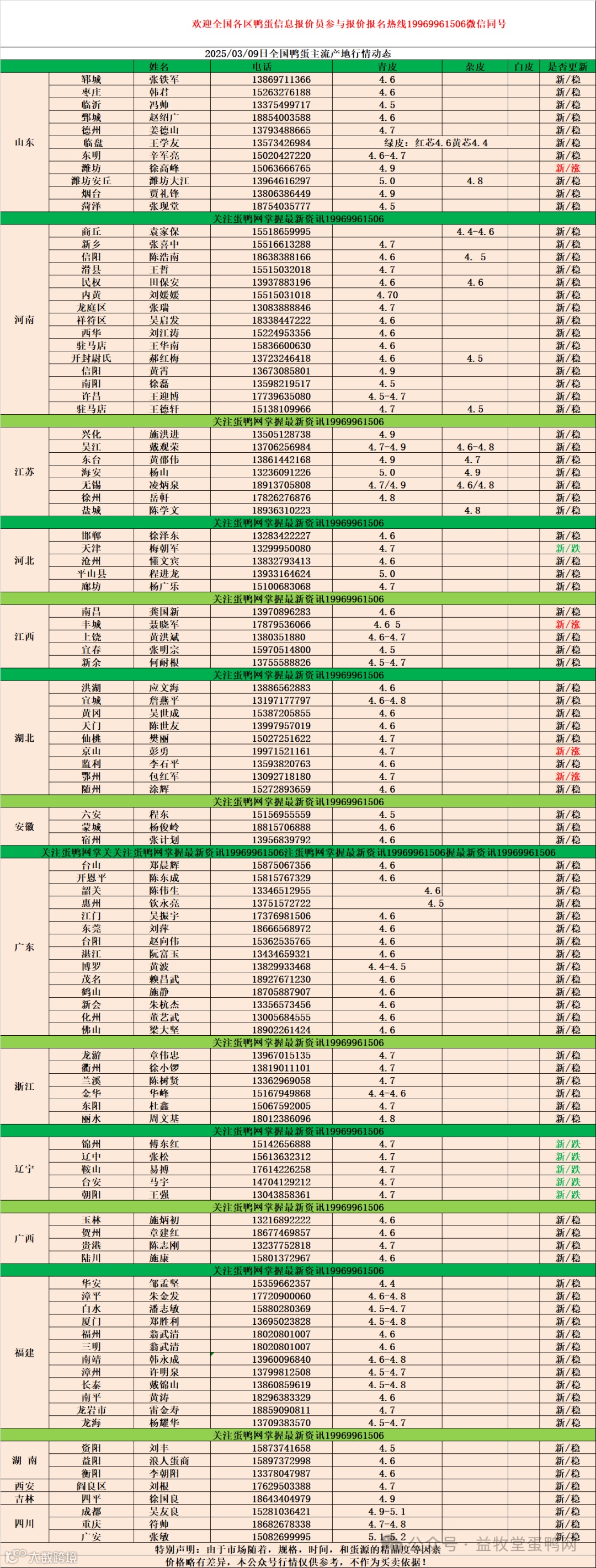 2025年3月9日商品鸭蛋报价 益牧堂水禽信息