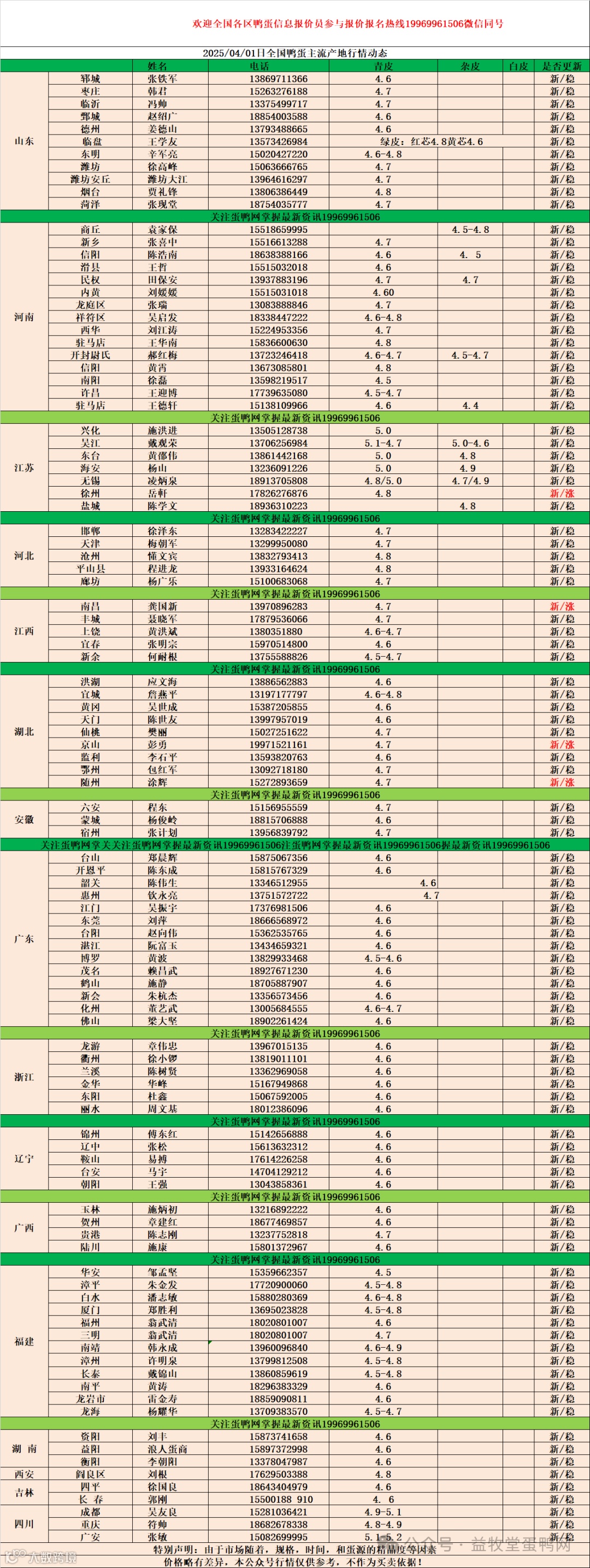 2025年4月1日商品鸭蛋报价 益牧堂水禽信息