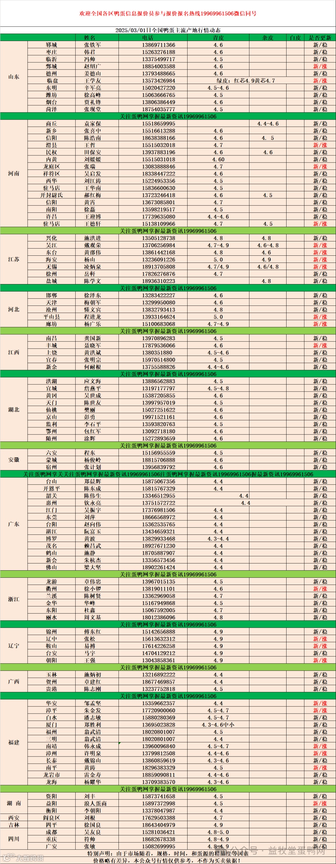 2025年3月1日商品鸭蛋报价 益牧堂水禽信息