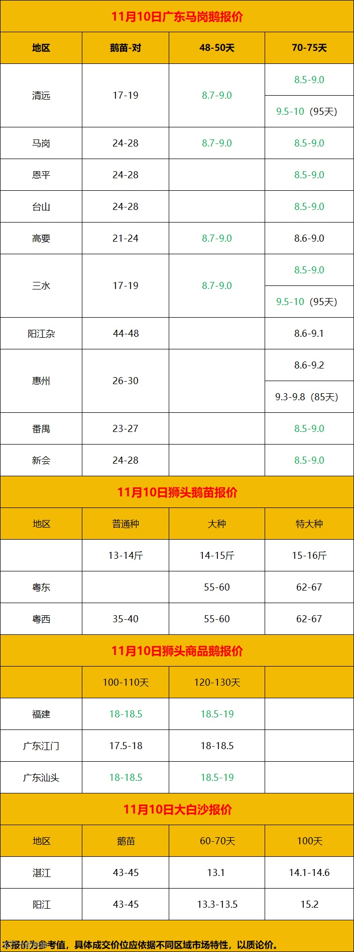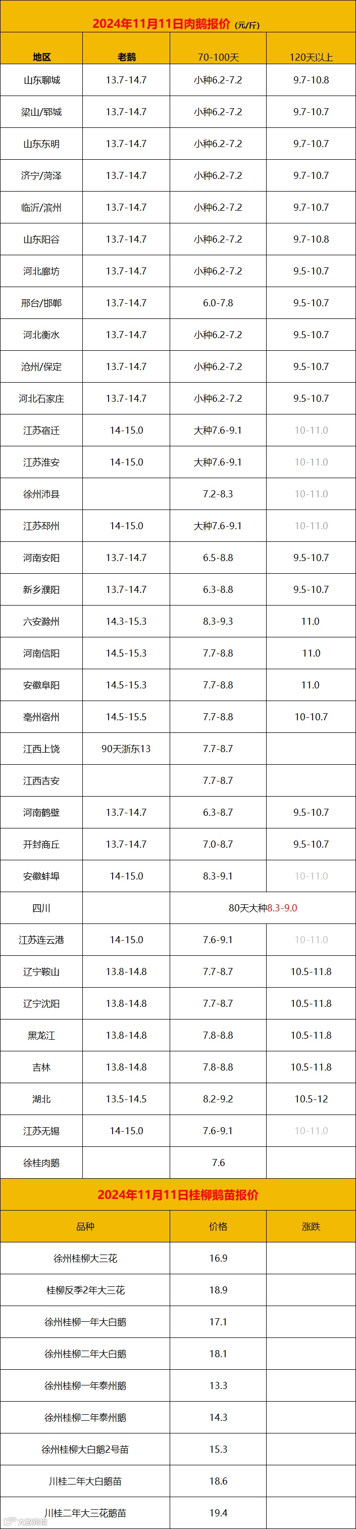 2024年11月11日鹅价快报