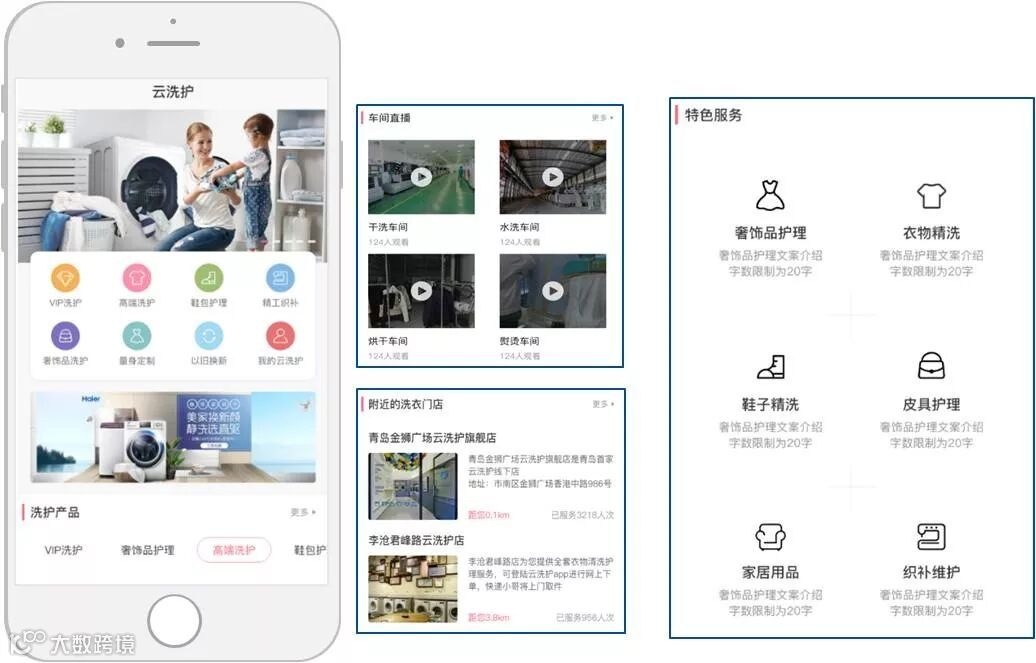 搭建云洗护平台,为行业和用户提供洗护增值体验。其洗护过程的可视化,建立与用户之间的信任链接。