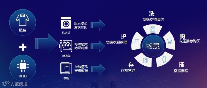 通过RFID的智能物联+标准洗衣程序,提供洗、护、存、搭、购场景解决方案。