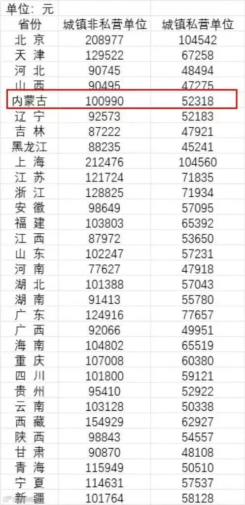 表:2022年31省份城镇非私营单位、城镇私营单位就业人员平均工资。(来源:《中国统计年鉴2023》)