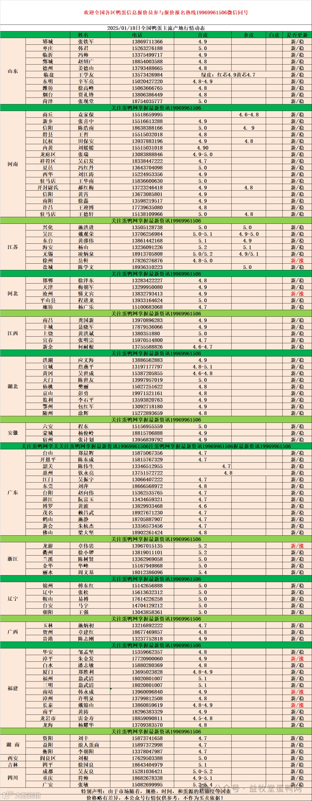 2025年1月18日商品鸭蛋报价 益牧堂水禽信息