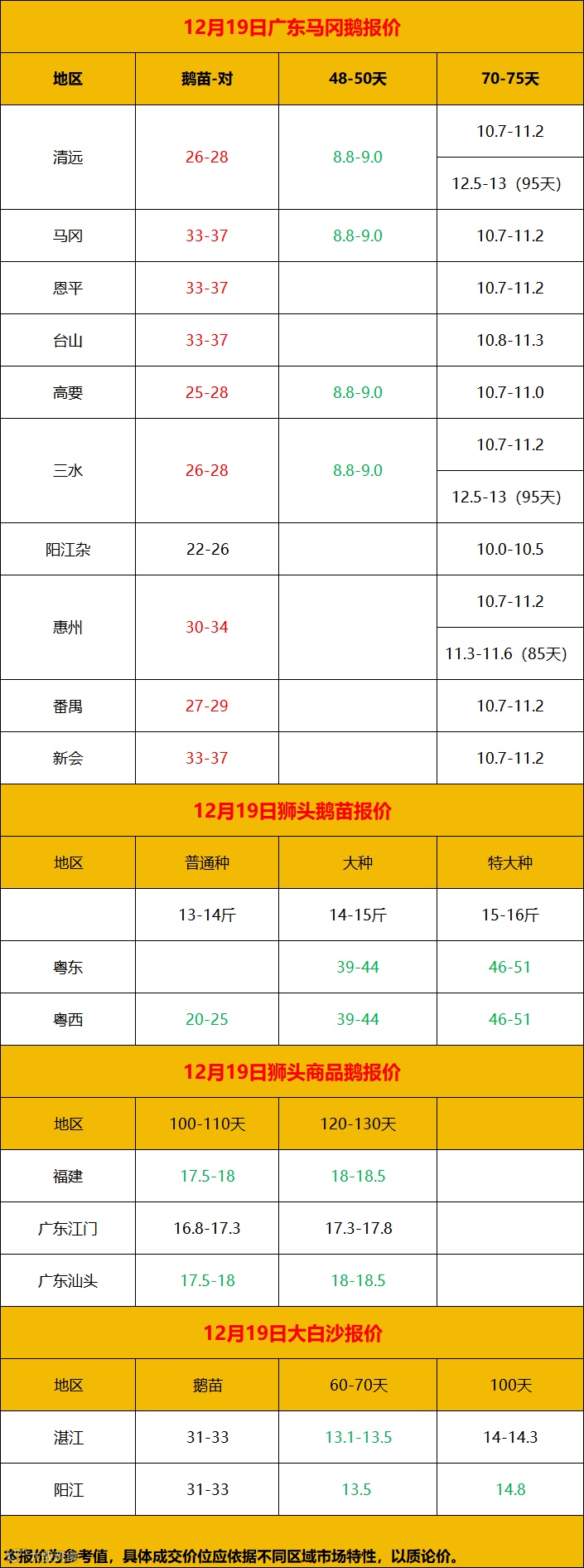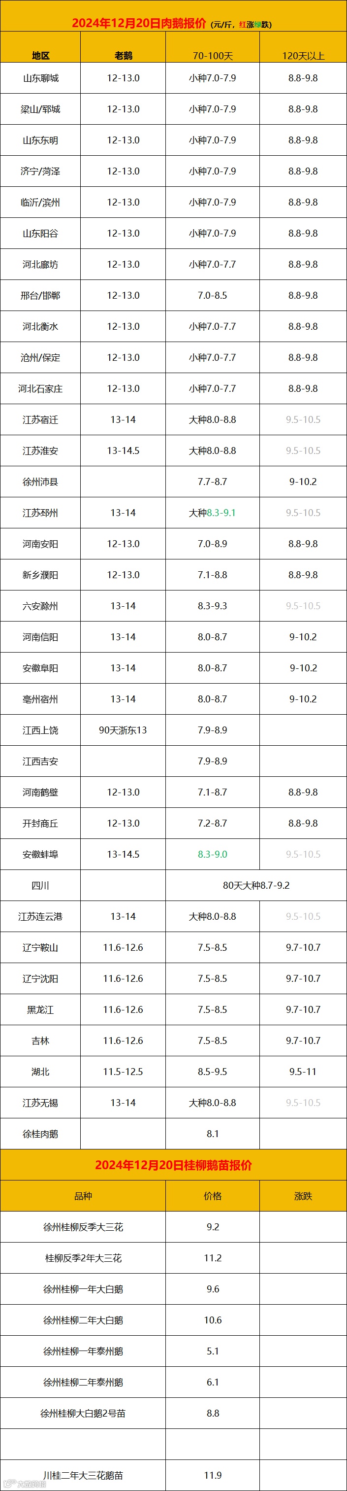 2024年12月20日鹅价快报