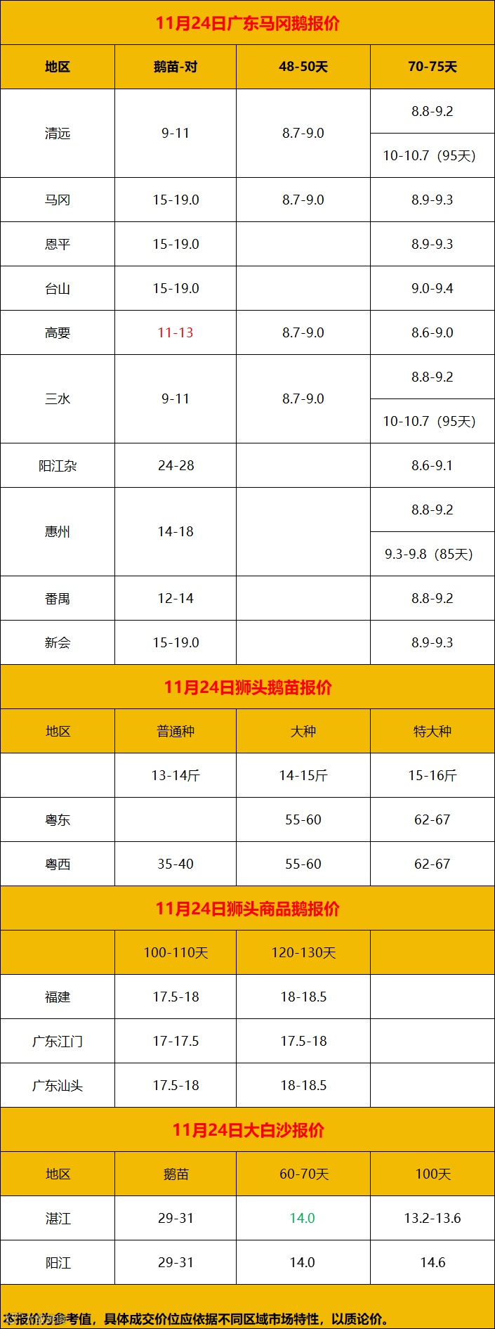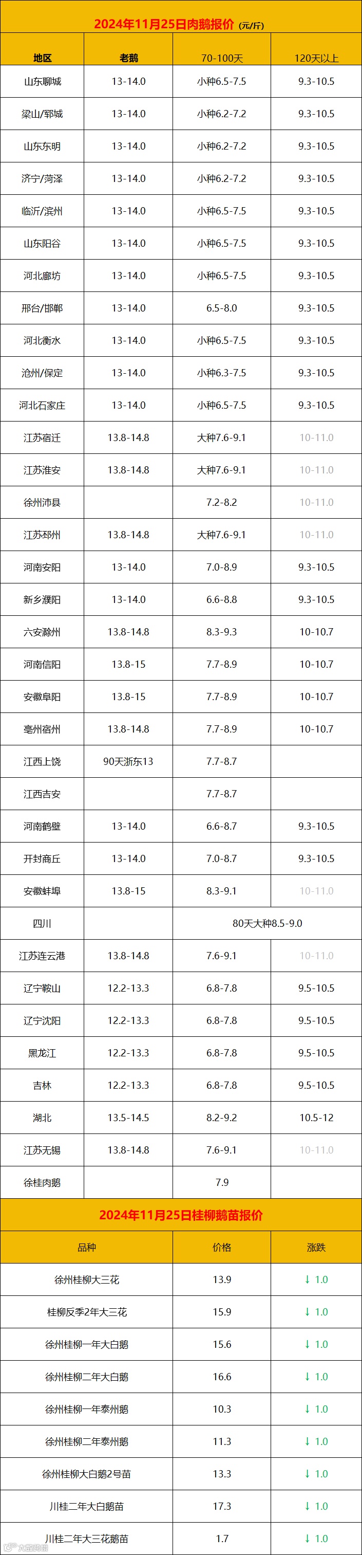 2024年11月25日鹅价快报
