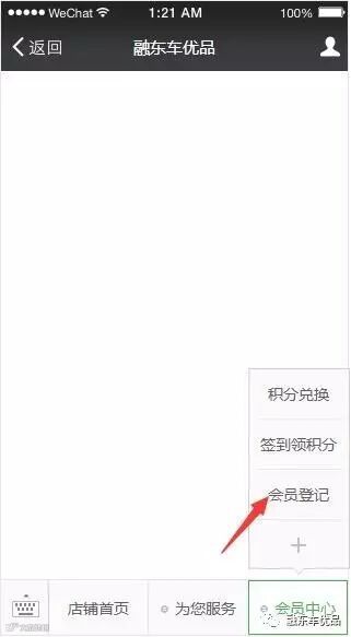 关注并进入融东车优品公众号,从底部菜单栏会员中心进入;