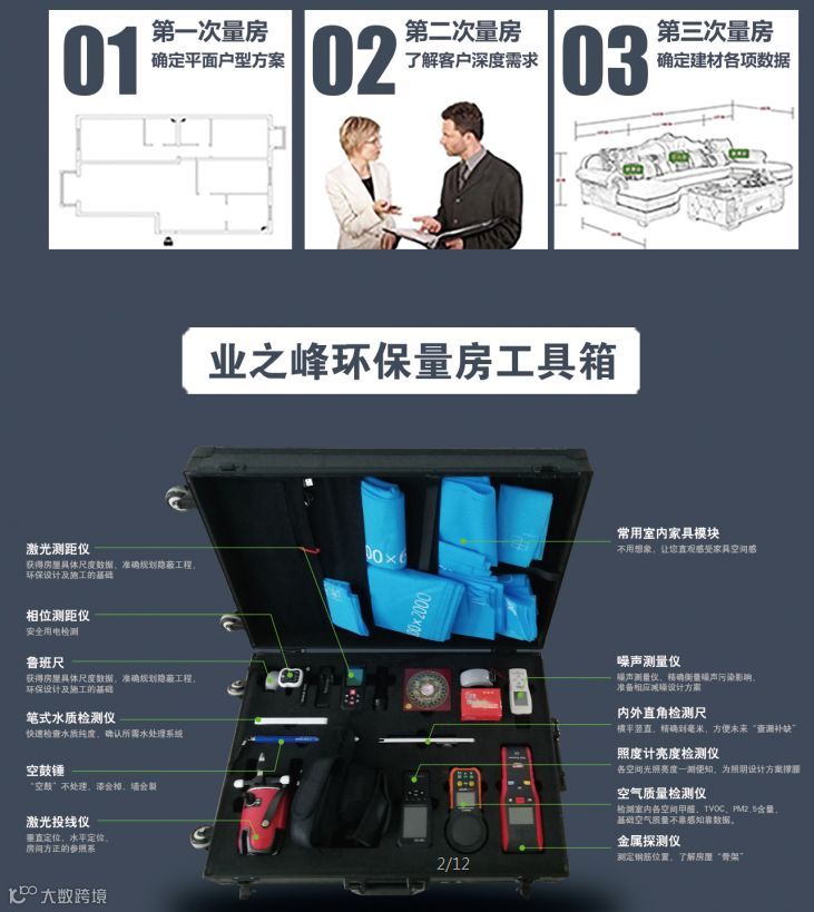 2018年,业之峰在业内率先推出“环保量房箱”,它包含环保量房所必备的26种工具,可以测量出环保设计所必不可少的66个关键数据,交付给客户4张环保检测单、2张房屋记录单、辅助预案共计218张,相当于为房子做了一个全面、专业的“体检诊断”。新的使命,照亮业之峰人前进的道路。通过用心为客户测量“环保尺寸”,让设计更加精准化,帮助客户打造温馨舒适的家,成就万千美满家庭!