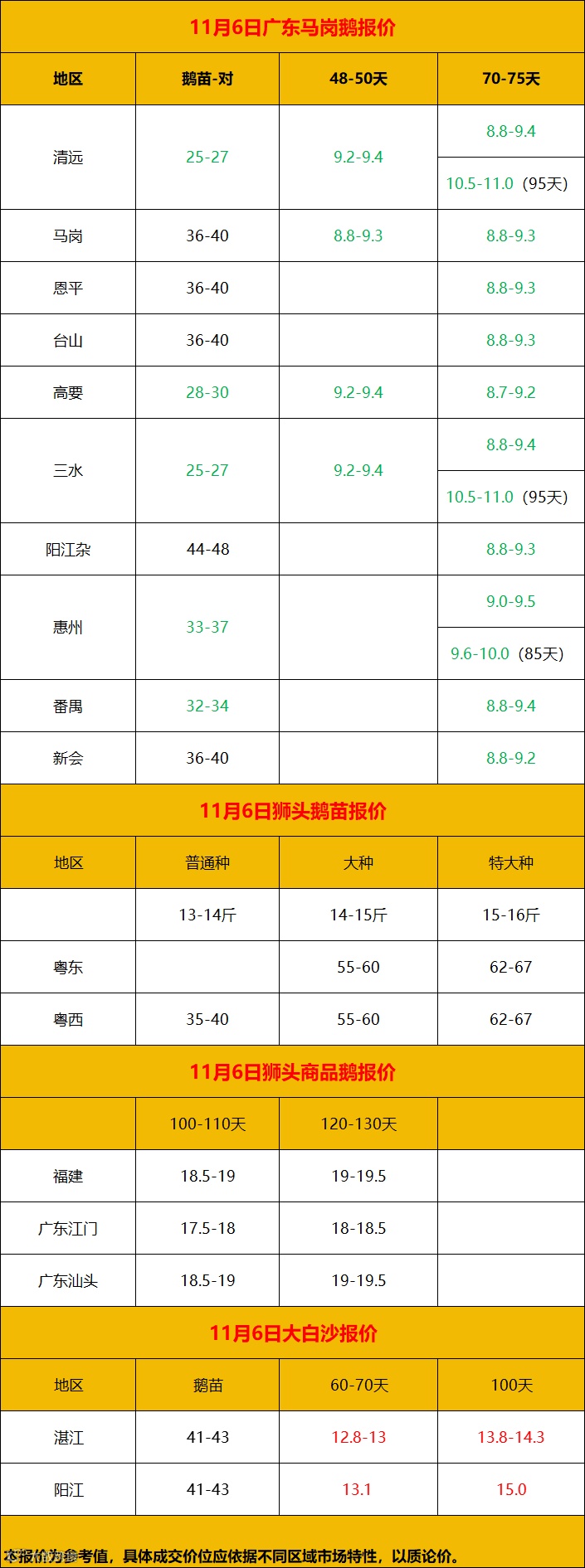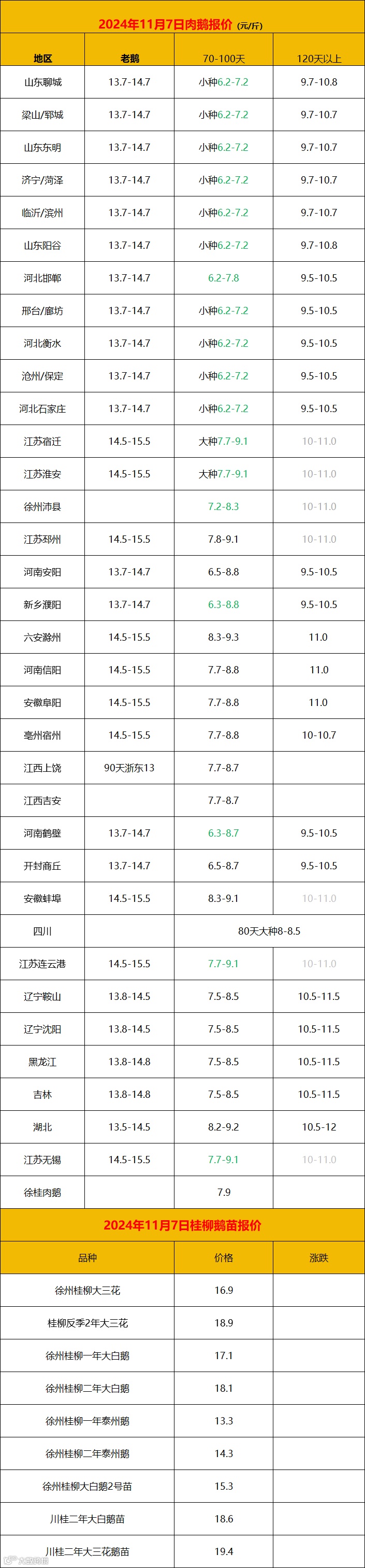 2024年11月7日鹅价快报
