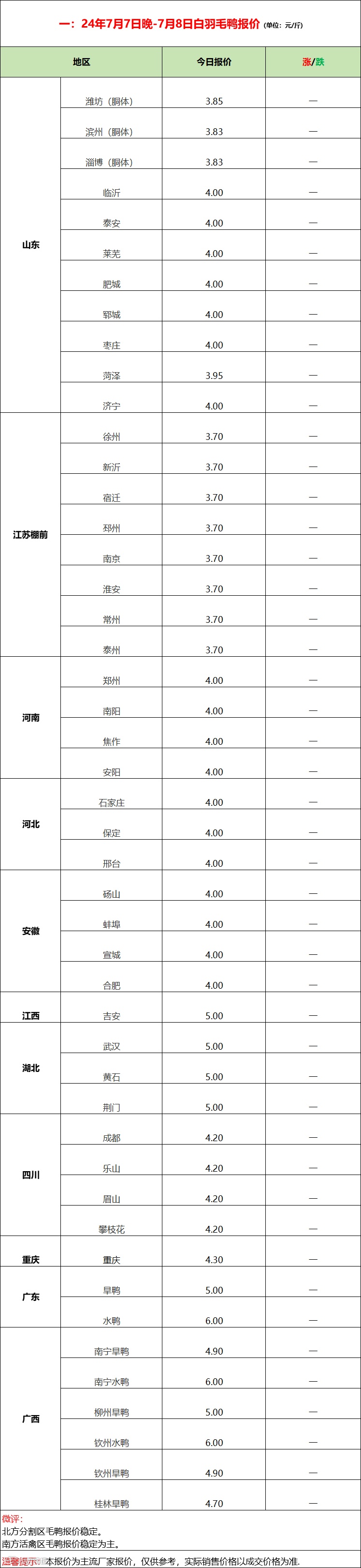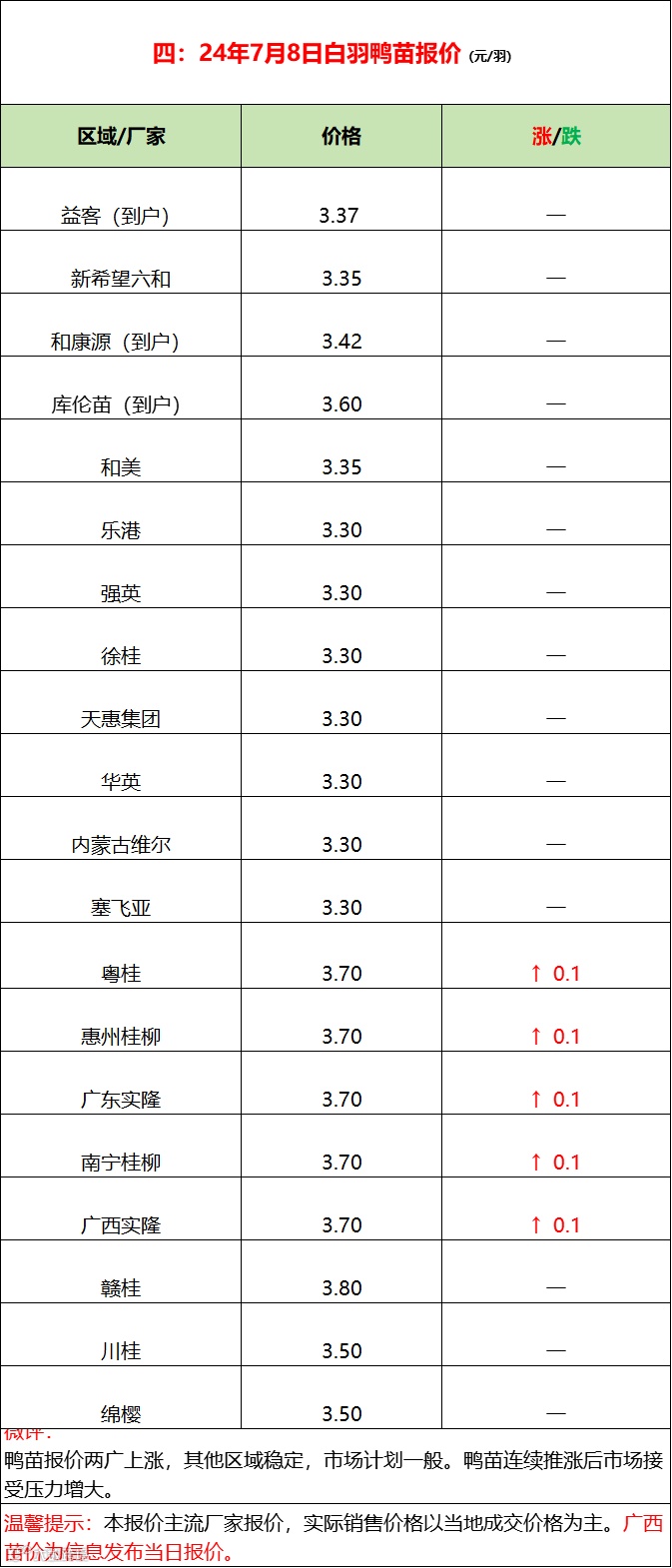 鸭苗局部上涨,市场反馈一般;--2024年7月8日水禽行情简报 益牧堂水禽信息