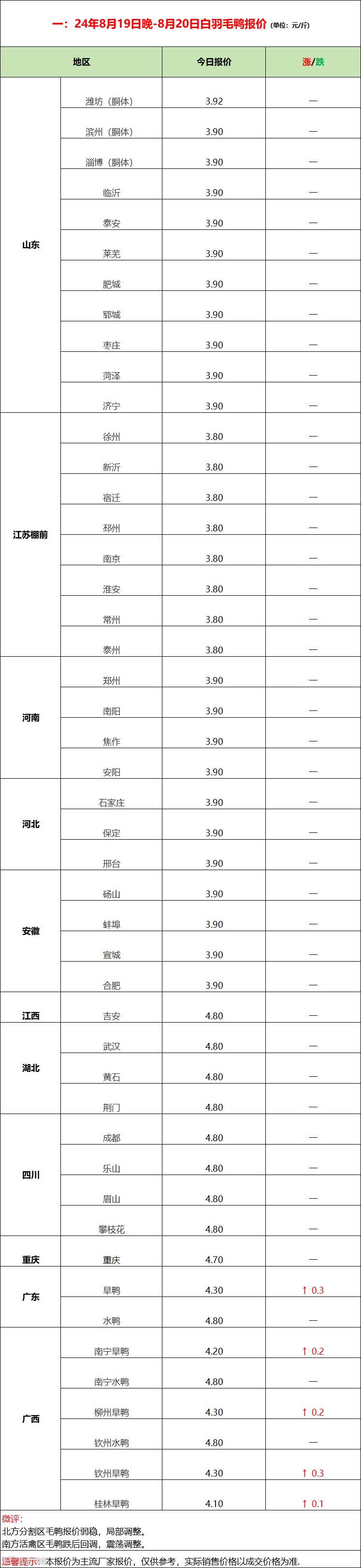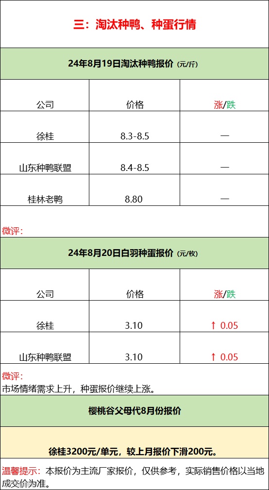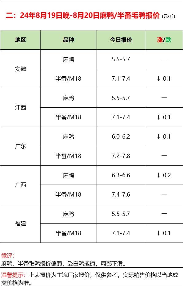 苗蛋继续上涨,产品持续疲软!--2024年8月20日水禽行情简报