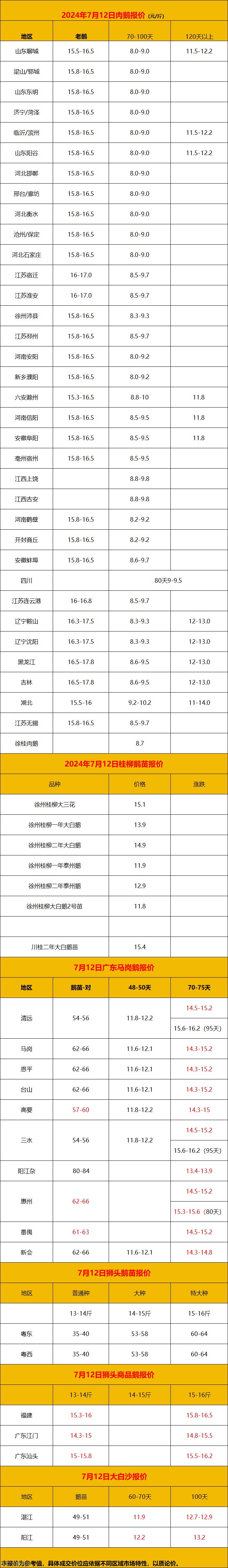 徐州淮安:一年三花种蛋7.2-7.4 泰州-种蛋6.9-7.1