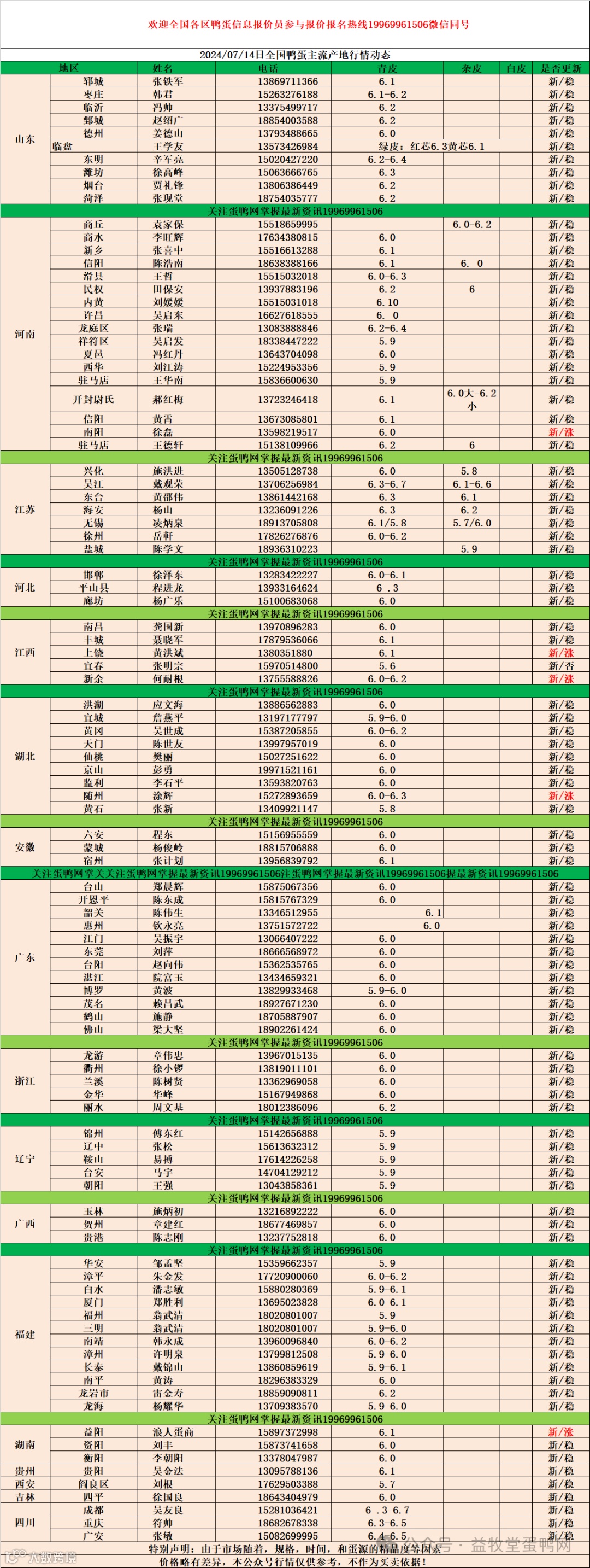 2024年7月14日商品鸭蛋报价