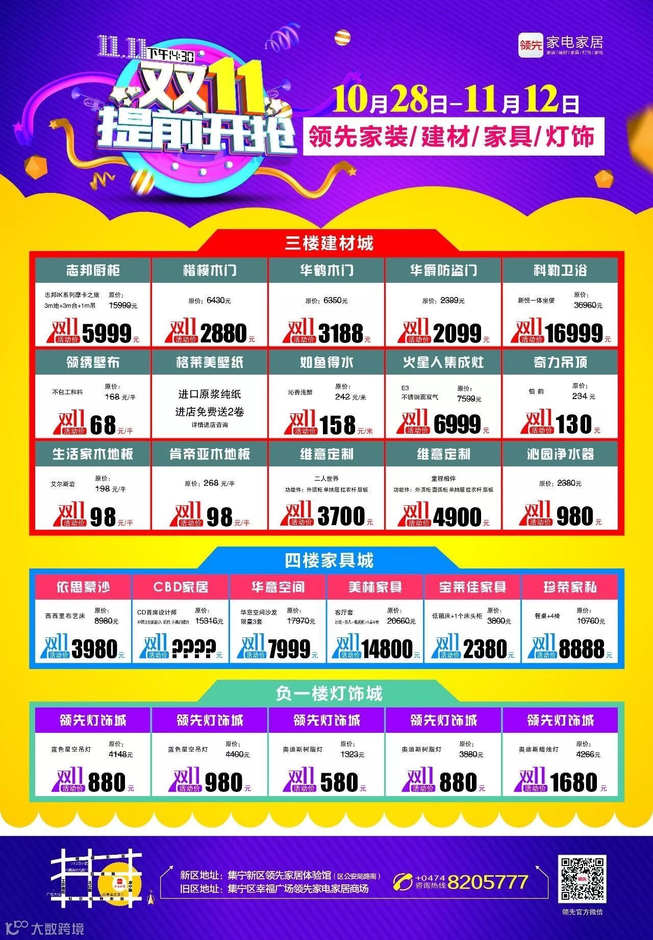 11月11日之前,报名参加本次活动的顾客,即可免费领取1000元现金券一张(一户顾客仅限领取一张),满1000元,即可抵扣100元;......以此类推!最高满10000元,即可抵扣1000元。