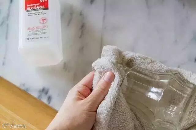注意一定要用75%的医用酒精。将大约15ml的酒精倒入干净的软布上,仔细擦洗玻璃杯内壁,最后用清水冲洗干净。