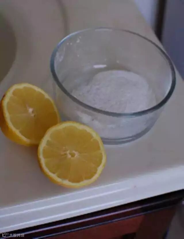 柠檬切开沾上食盐,能快速去除玻璃门上的水垢。也可以用白醋替代柠檬,混合白醋和食盐,用刷子刷洗玻璃门上的水垢。