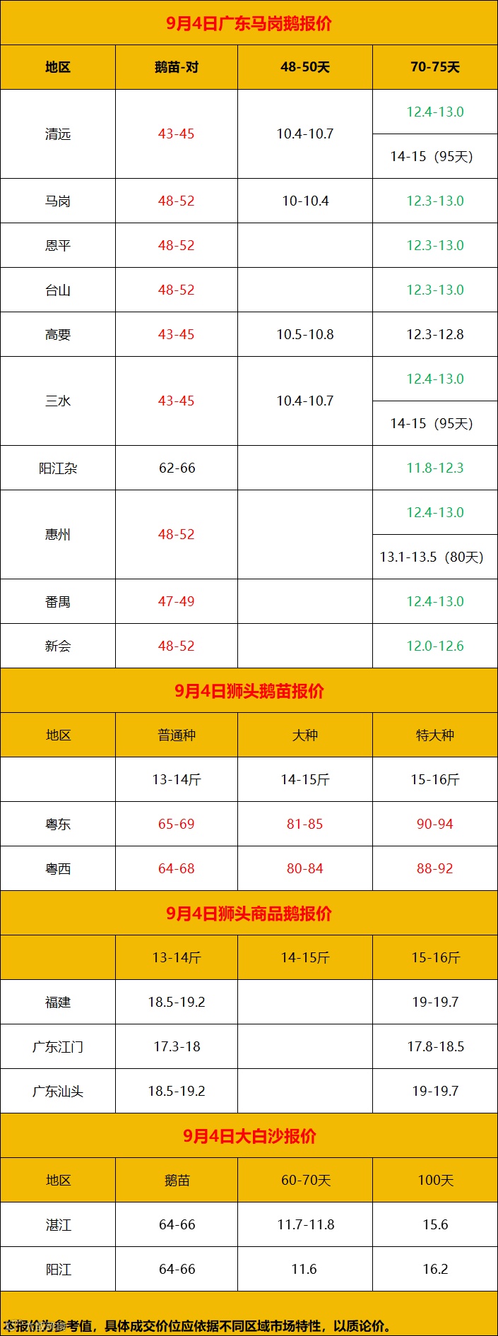 2024年9月5日鹅价快报