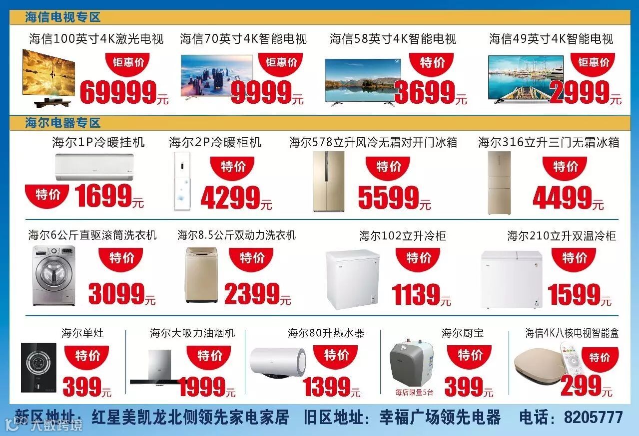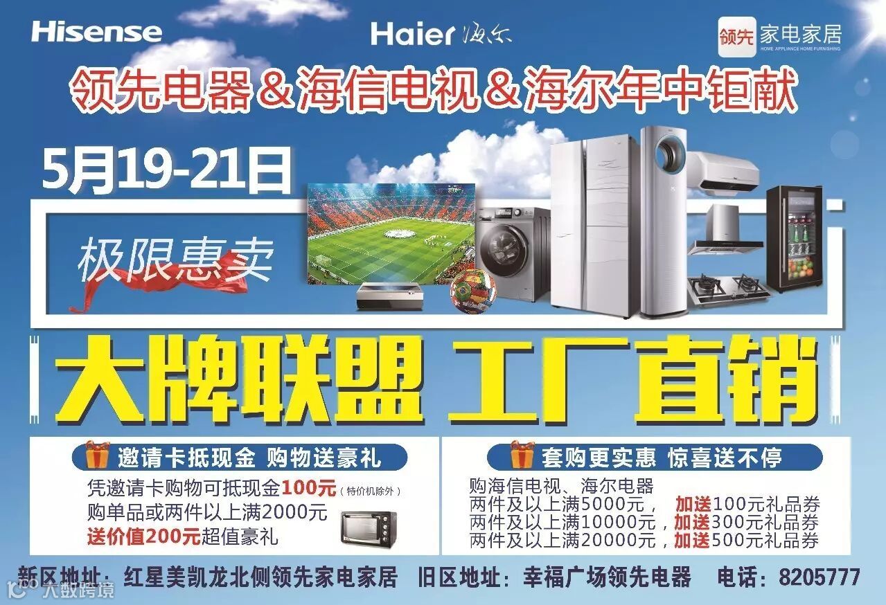 领先家电家居来来来,各位看官都站好了,小编我要宣布一个重要的消息,就是领先电器&海信电视&海尔电器大牌联盟,工厂直销。