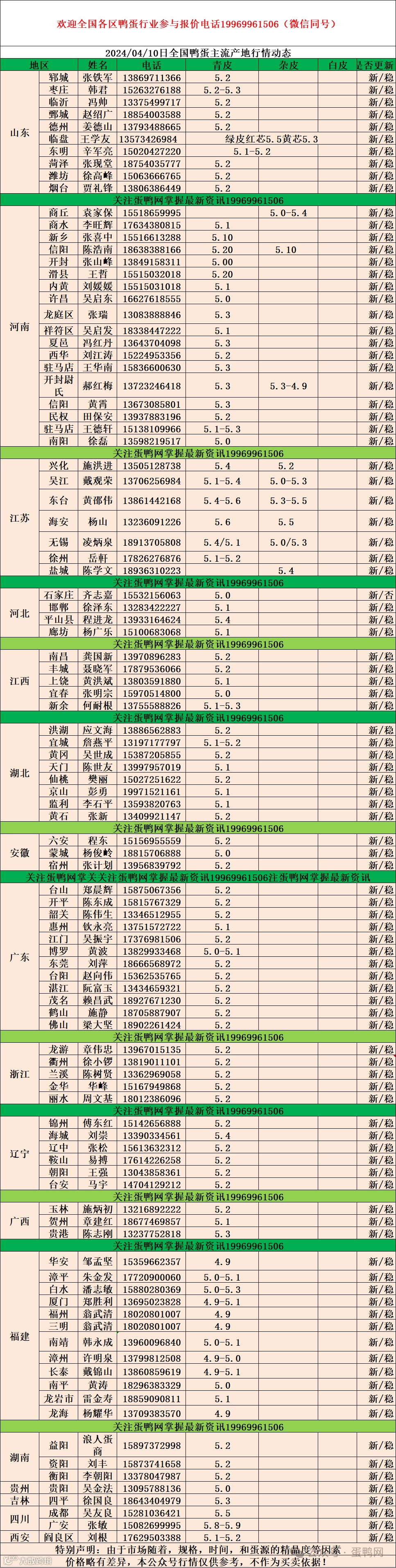 2024年4月10日商品鸭蛋报价