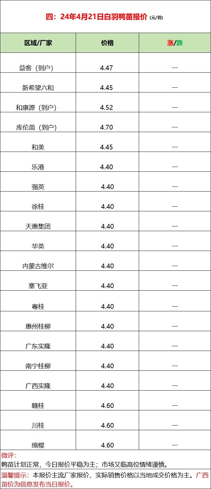 今日樱桃谷鸭苗报价走稳,市场计划正常,鸭苗高位压迫下游补栏情绪谨慎。