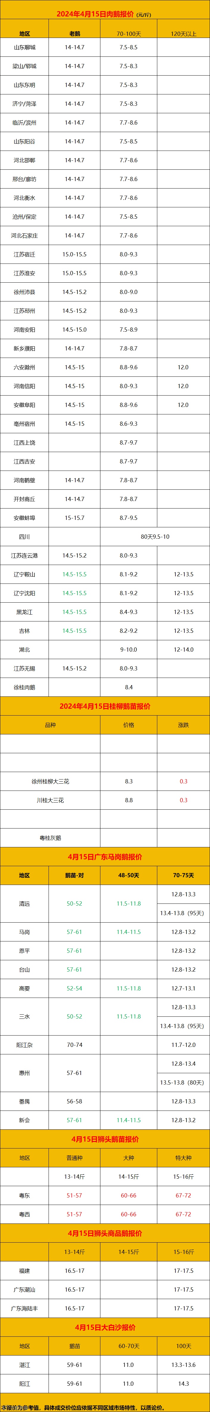 廊坊唐山:一年三花种蛋5.3-5.5 泰州-种蛋4.7-5.0
