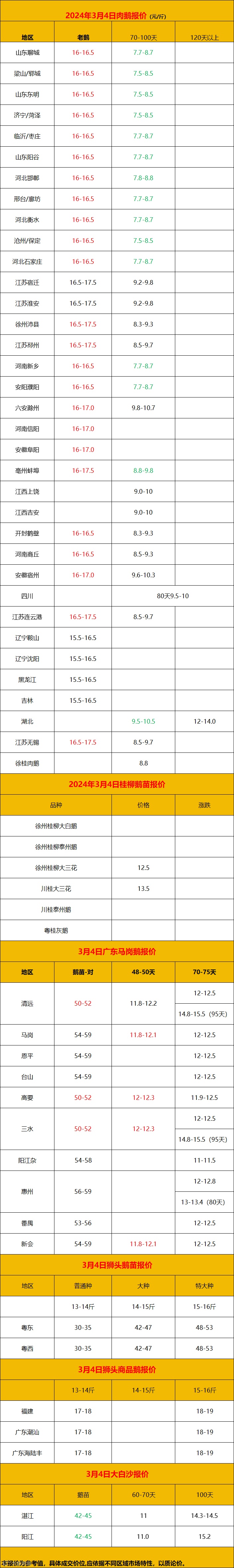 廊坊唐山:一年三花种蛋5.1-5.3 泰州-种蛋4.5-4.8