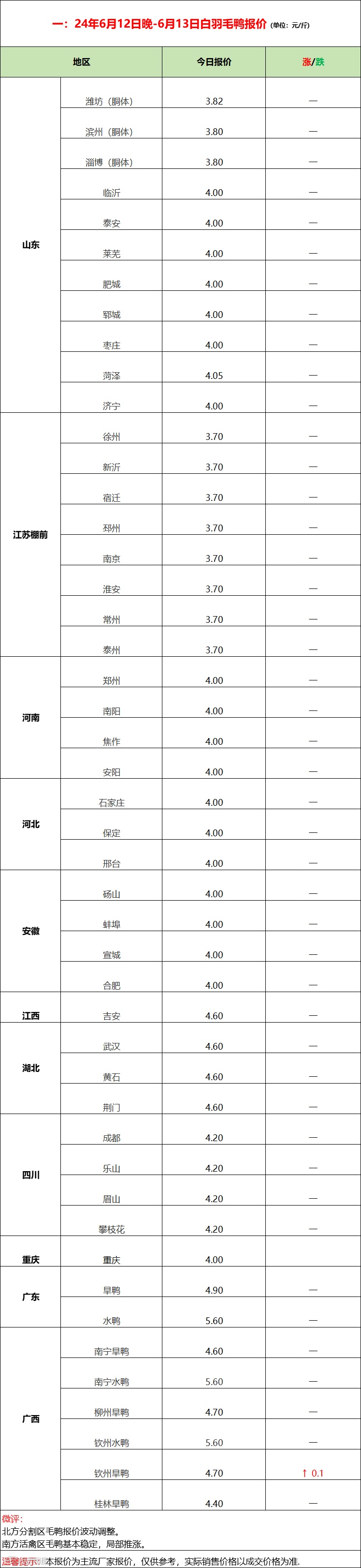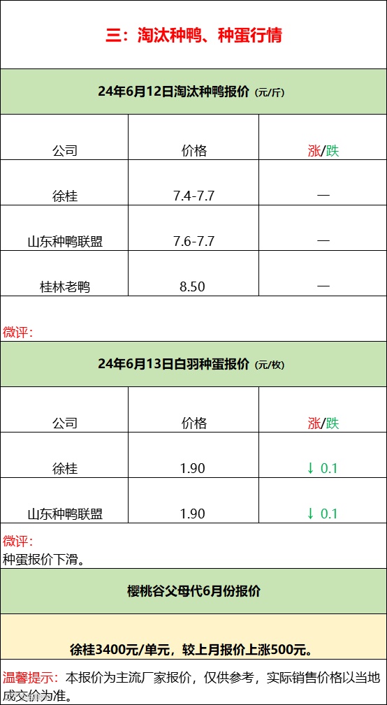 2024年6月12日水禽行情简报 益牧堂水禽信息