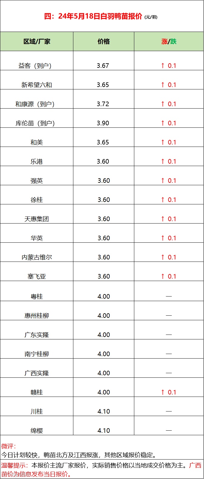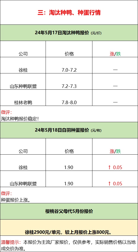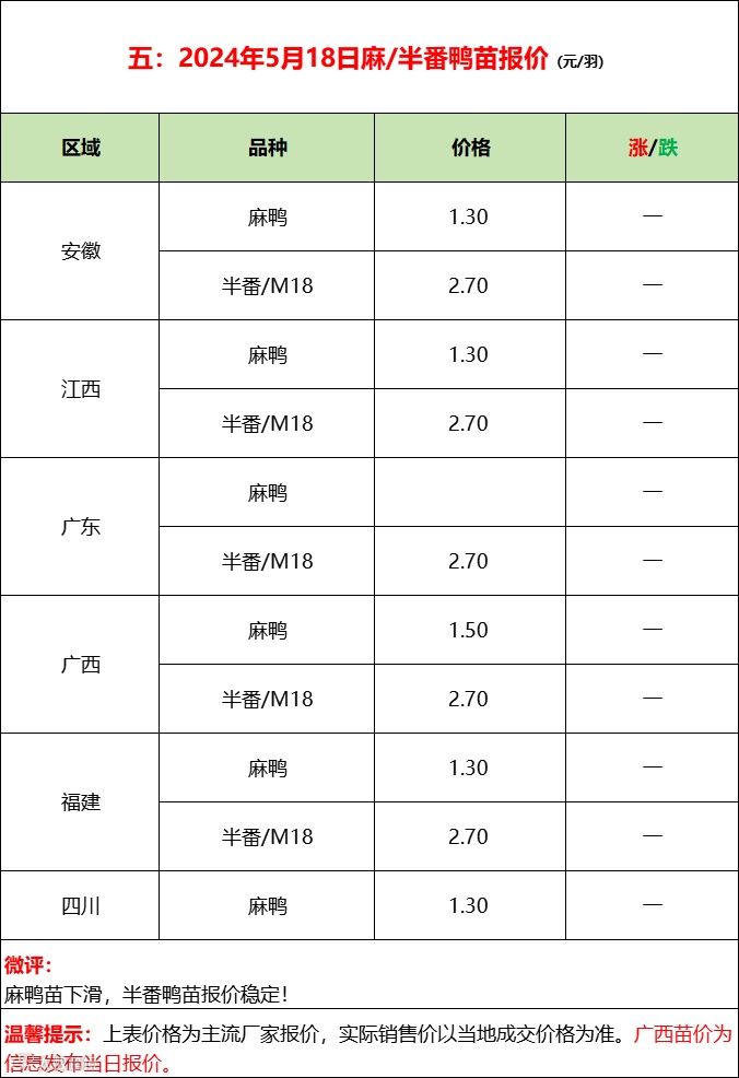 2024年5月18日水禽行情简报 益牧堂水禽信息