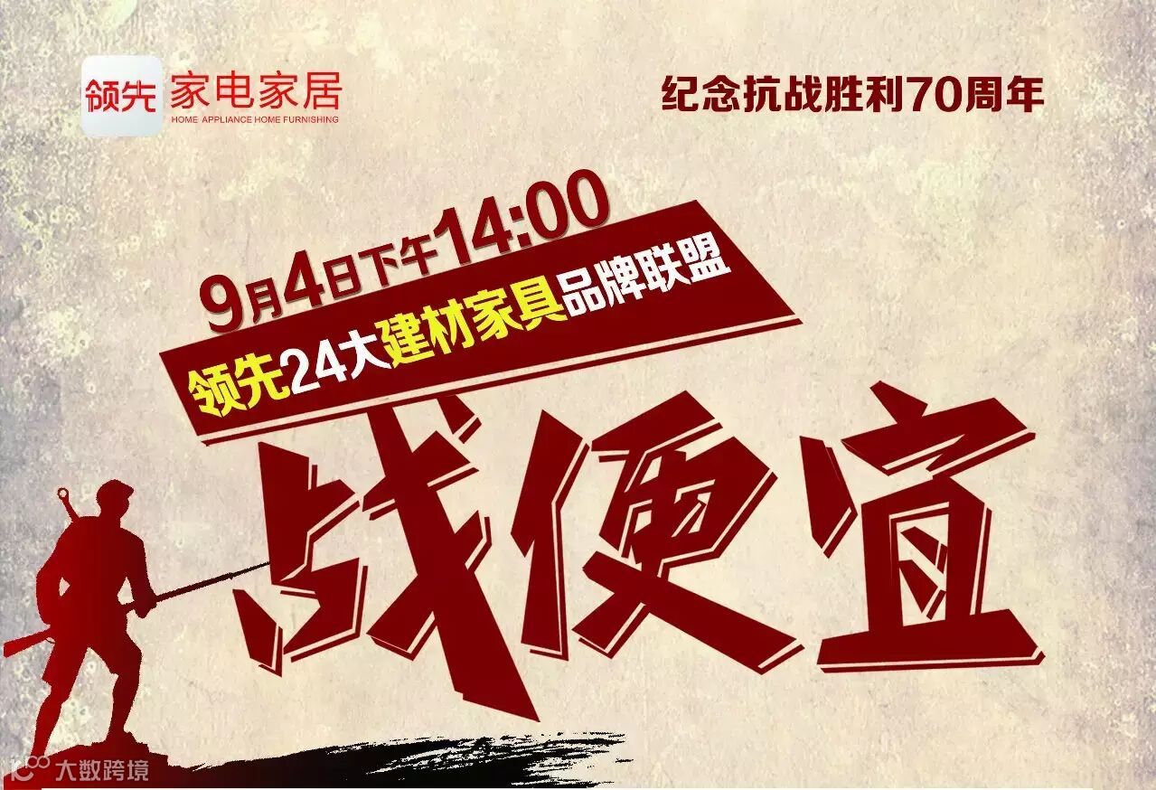 9月4日领先24大建材家具品牌鼎力联盟——我们邀您一起“战便宜”,丰厚礼品、超值秒杀、金花四溅砸金蛋 等你来呦!