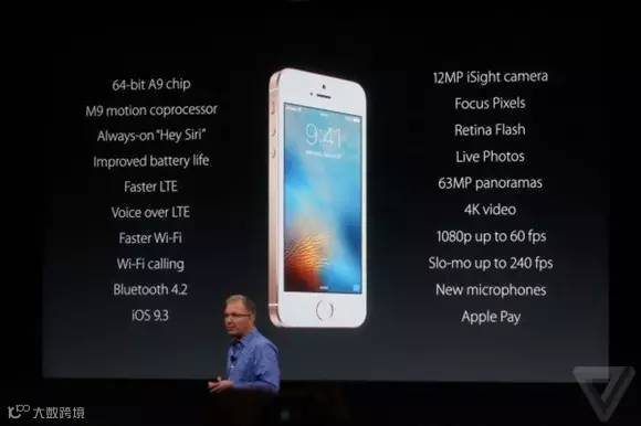 性能基本上和iPhone 6s的性能相当,同样搭载1200万像素摄像头,A9处理器,搭载的是最新版的iOS 9.3,苹果称之为“史上最强大的4英寸iPhone”。