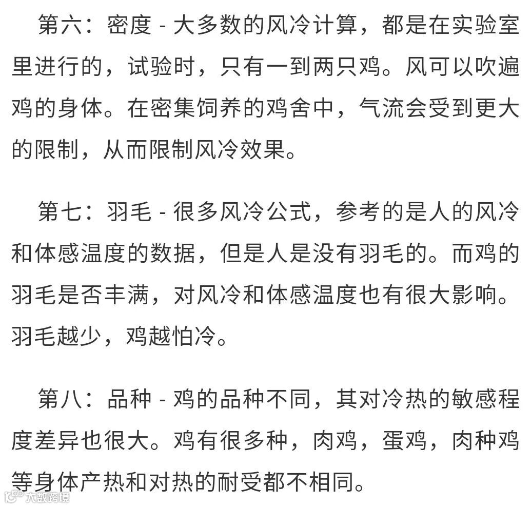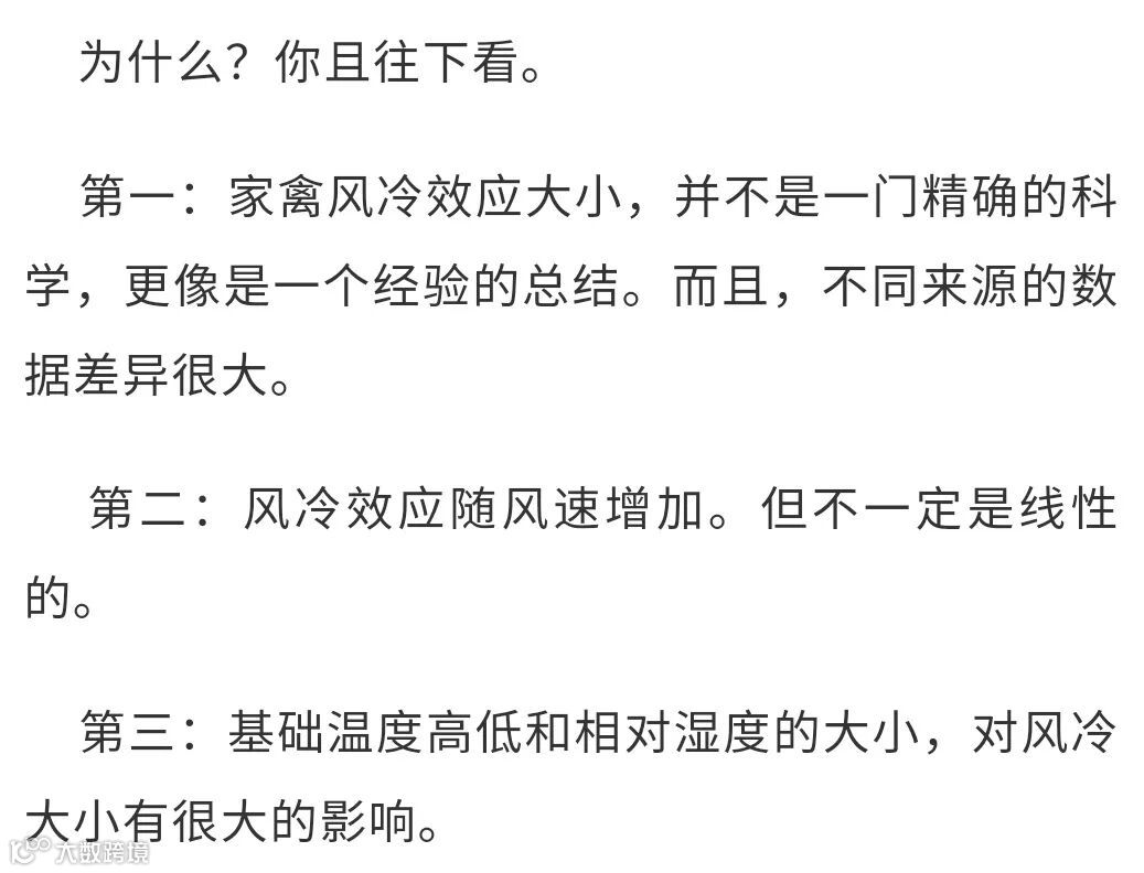 导读:相信每一个养鸡的人都有一个公式,或者图表。就是多大的风速,对于多大的风冷效应以及鸡的体感温度是多少。
